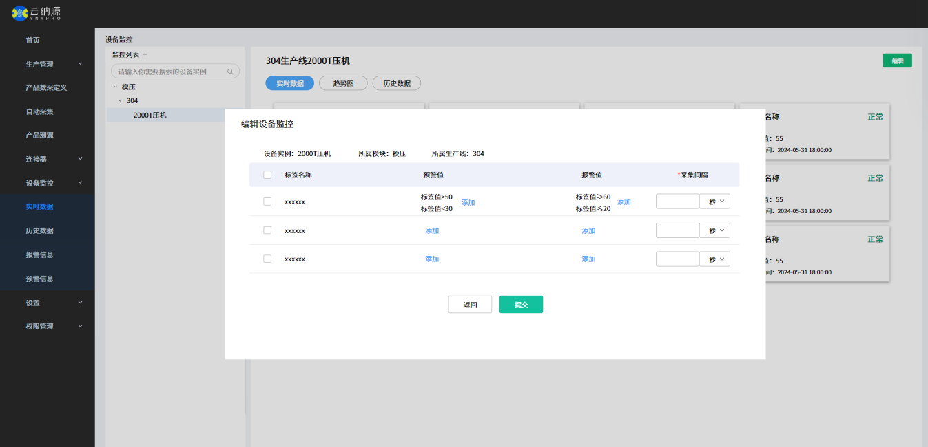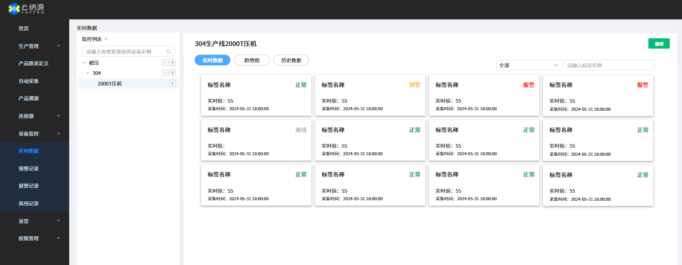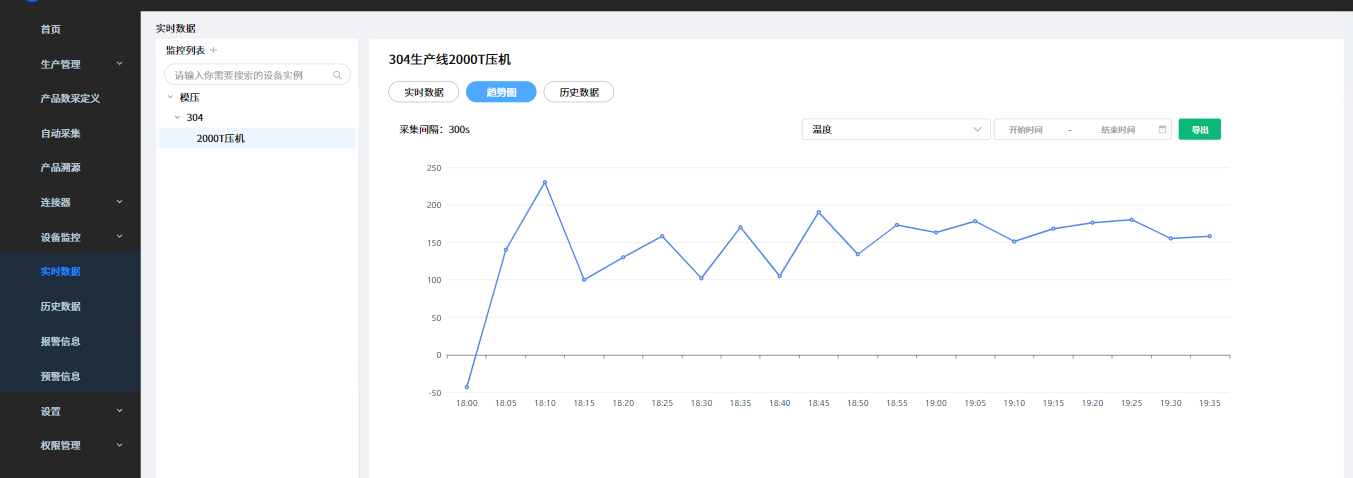 Support realtime trend chart to analyse equipment data, and view/export equipment historical data for further analysis